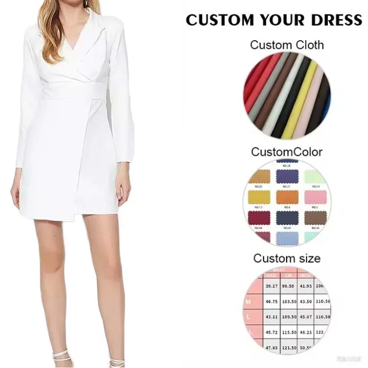 Custom Office Ladies Formal Suit Dress Notched Collar Long Sleeve Wrap Lined Buttoned Career Elegant Women Dress